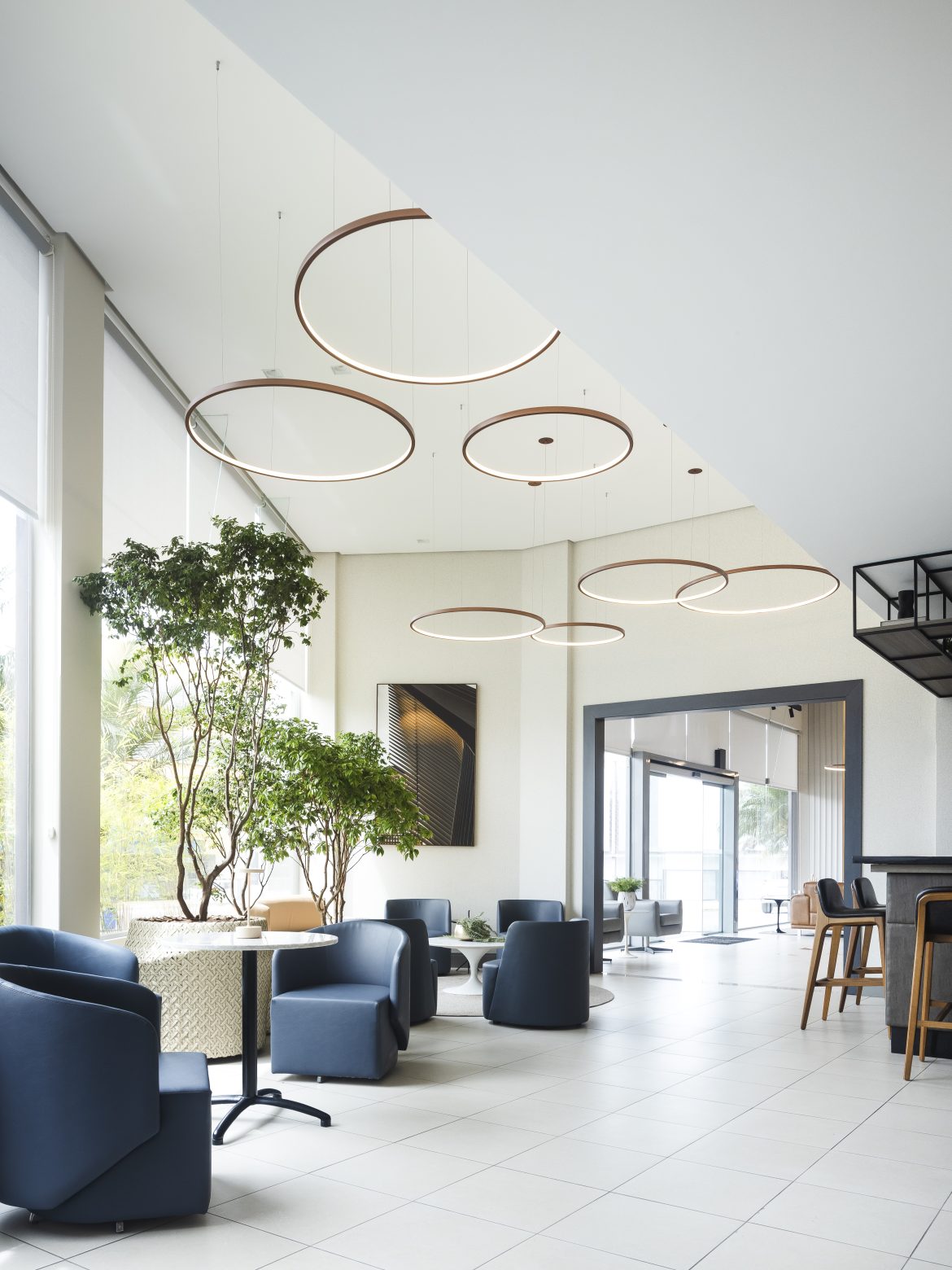 A escolha de materiais também influencia diretamente a experiência do hóspede. “Tecidos macios, madeira e cores suaves criam uma sensação tátil e visual que promove o bem-estar”, complementa a arquiteta, especialista na criação de projetos para o setor de hotelaria.