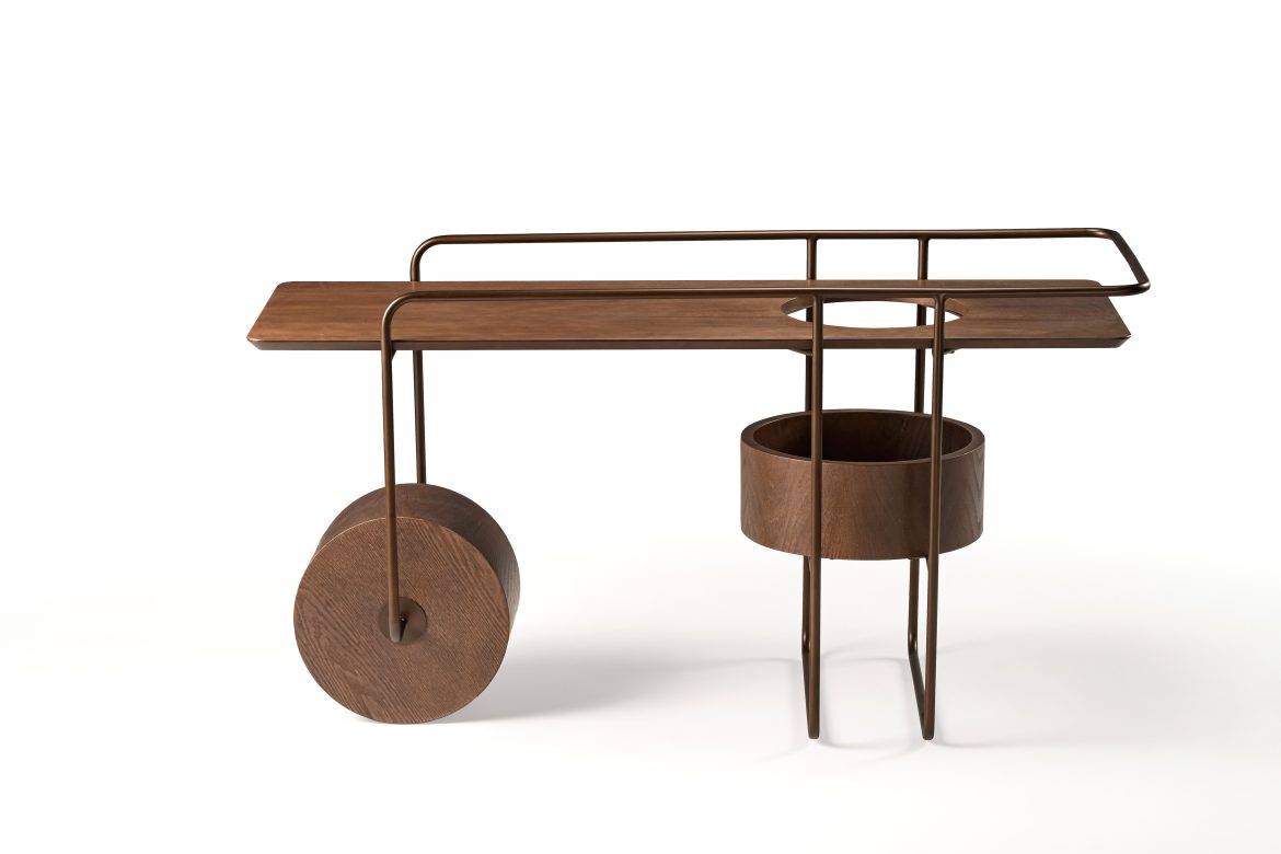 Aura é uma celebração da mobilidade e do design funcional. Com sua estrutura leve e sofisticada, esta peça combina a madeira com a rigidez do metal, criando uma interação harmoniosa entre materiais e formas. O destaque da peça está em suas grandes rodas e no uso inteligente de superfícies circulares, que além de agregar um visual inovador, proporcionam praticidade e movimento. Seja como mesa auxiliar, bar móvel ou aparador de apoio. Aura transforma ambientes com sua versatilidade e estilo contemporâneo, permitindo que o design siga o fluxo de qualquer espaço.