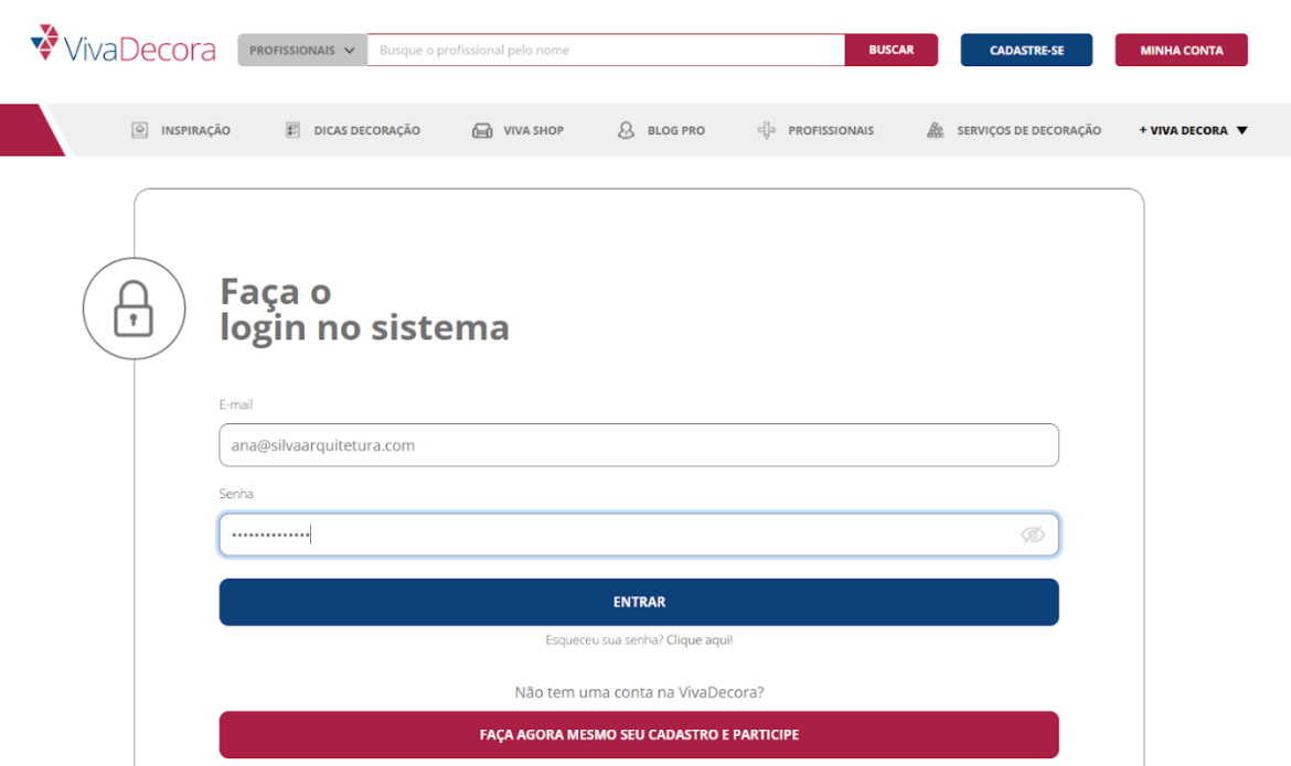 Como criar um perfil na Viva Decora?