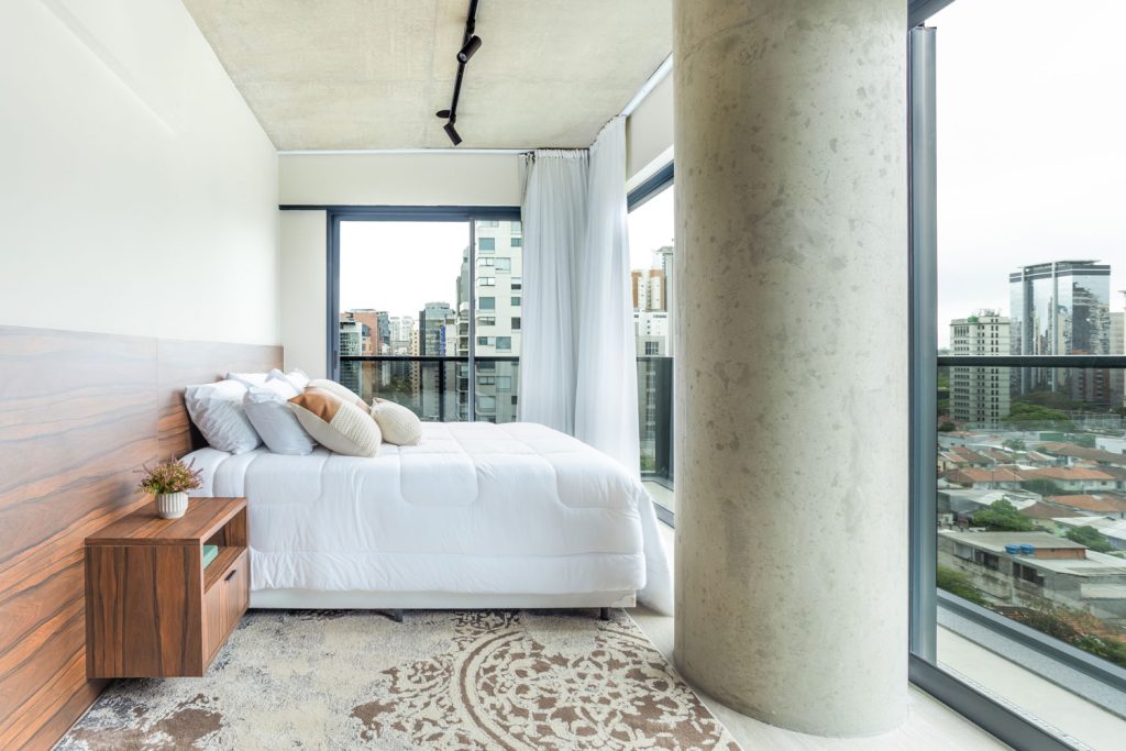 Linhas minimalistas, fluidez entre os espaços e uma vista imponente para a Faria Lima, uma das mais expoentes avenidas da capital paulista. Essas são algumas características deste apartamento onde a arquitetura de interiores foi minuciosamente planejada para valorizar a abundante iluminação e ventilação natural e a integração dos ambientes que abraçam com a beleza das colunas que integram a estrutura do edifício.