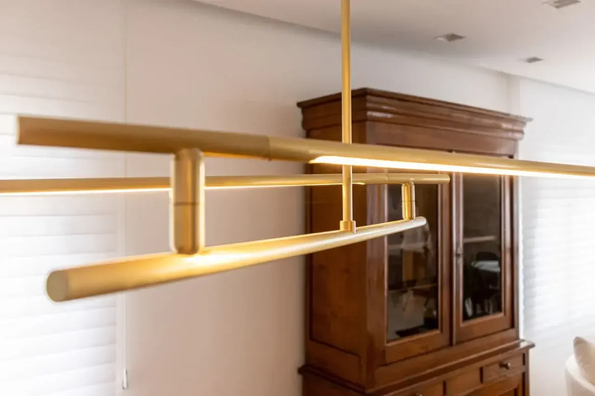 Vale destacar também a linda luminária dourada usada na sala de jantar.